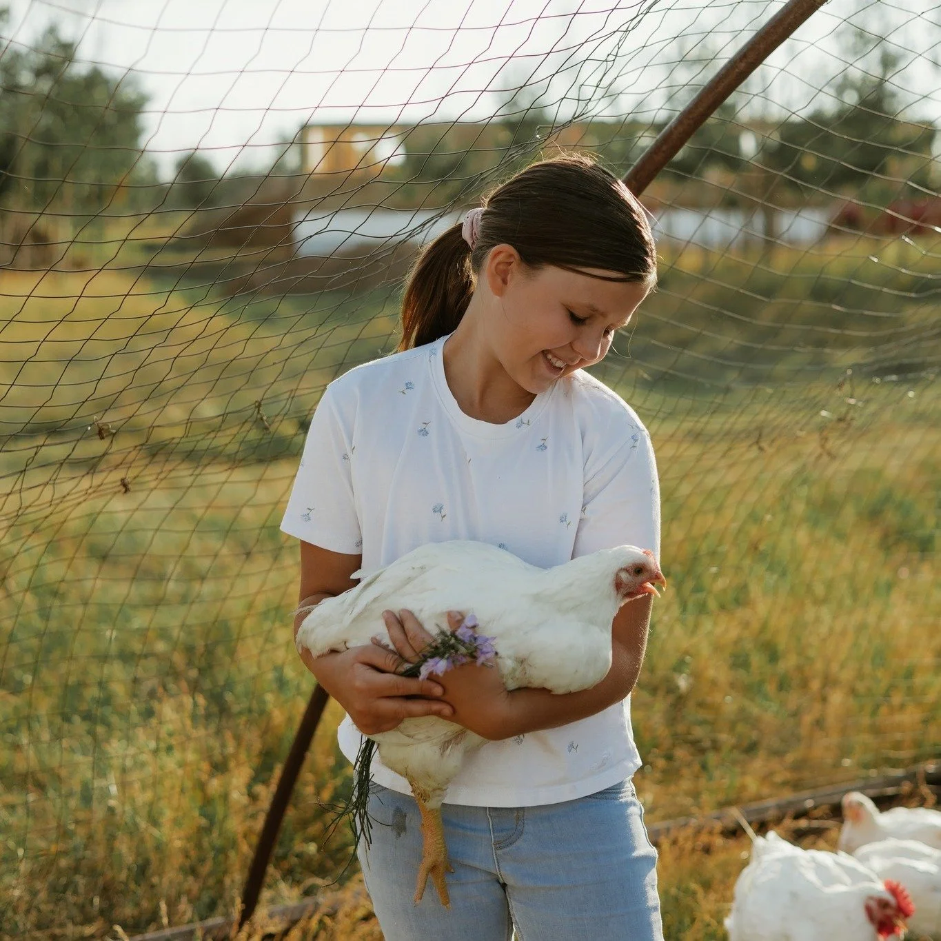 We are Kurt and Erin Chick, a first-generation family farm committed to raising healthy, happy animals. Our children, Hunter and Brexley, are actively involved in caring for our holistically managed pasture-raised poultry and sheep. We practice regenerative farming with a commitment to sustainability.