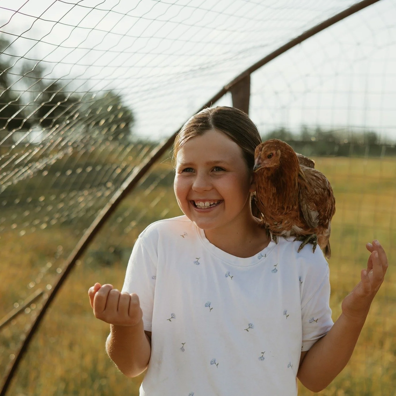 We are Kurt and Erin Chick, a first-generation family farm committed to raising healthy, happy animals. Our children, Hunter and Brexley, are actively involved in caring for our holistically managed pasture-raised poultry and sheep. We practice regenerative farming with a commitment to sustainability.